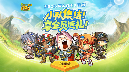 4月10日,《冒险岛》怀旧服开放预约,并且针对预约的玩家直接赠送经典限定道具“嘿嘿蘑菇帽”。今天小队集结活动也上线了~