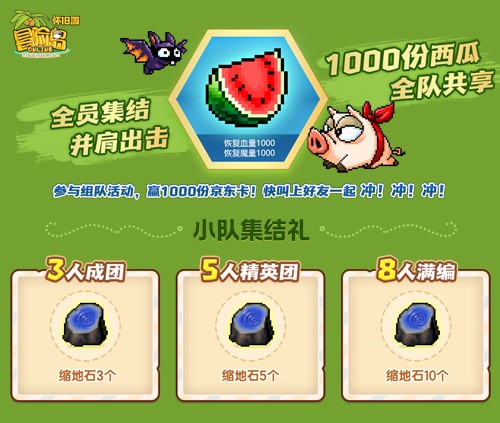 召集好友完成每日任务,达成一定积分,就能瓜分终极奖励——“西瓜”!另外,还有随机1000份京东卡奖励等你来赢取哦!